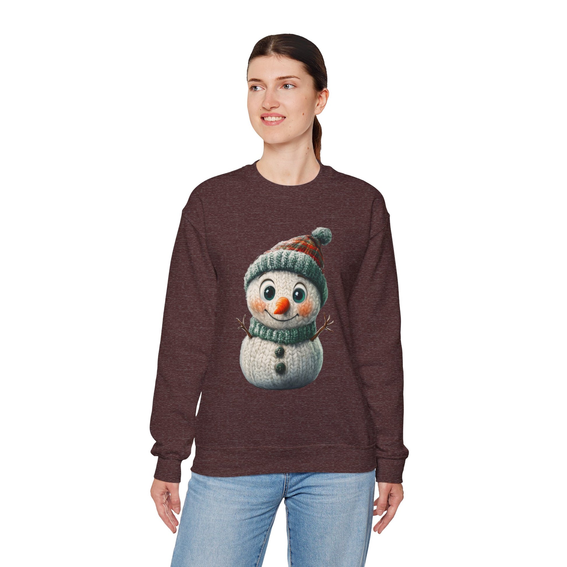 Crewneck Sweatshirt - Cute Crochet Knit Effect Snowman - Cozy Winter Holiday Pullover